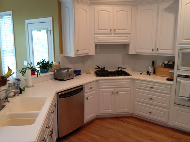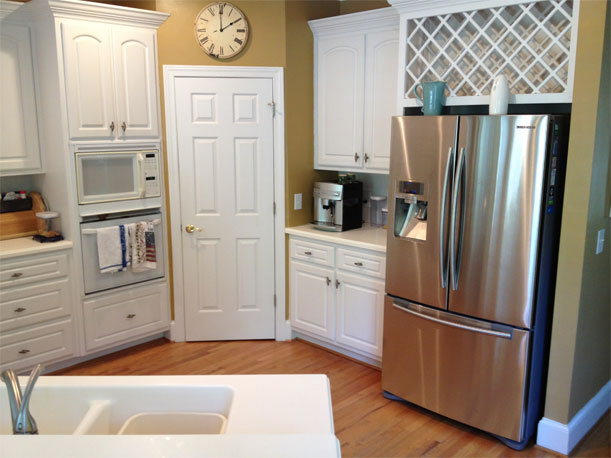 Transformation of a basic "white" kitchen into a beautiful modern kitchen